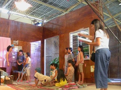 Mỗi ngày, thông thường đoàn phim lên xe trực chỉ hướng Củ Chi lúc 5g30 sáng. Hôm chúng tôi tò mò muốn biết cái mới của truyền hình ra sao, đến phim trường Củ Chi thì thấy cứ như nhà trẻ - gần 20 thiếu nhi có mặt!